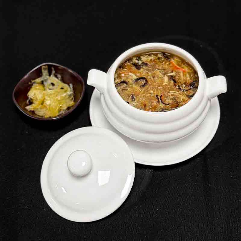 Shark Fin Soup with Black Mushrooms and seperate shark fin meat