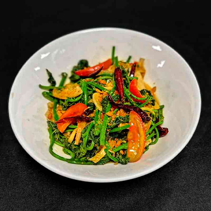 Fried Chayote Leaves with Bean Sheet, Long Chili and Onion
