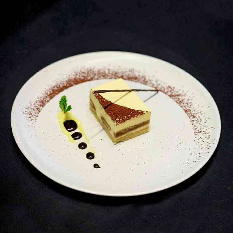 Kahlua Liquor scented Finger Biscuit, Mascarpone Cream and Chocolate-Waffle flute