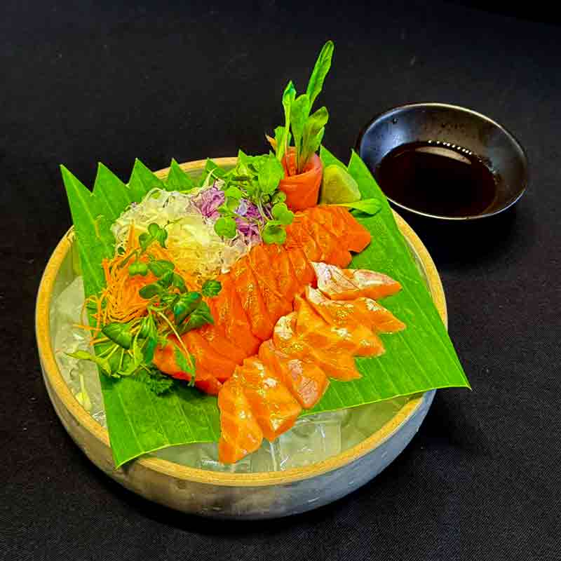 Norwegian Salmon served with Kikkoman Soya Sauce and Wasabi.