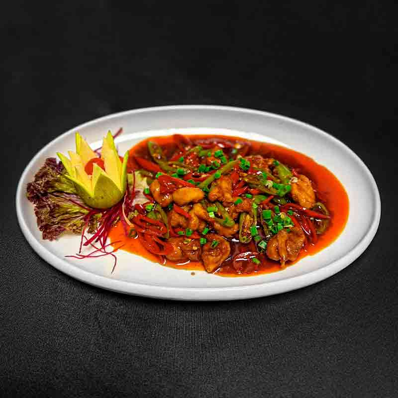 Wok fried chicken with Long Chili and Szechuan paste
