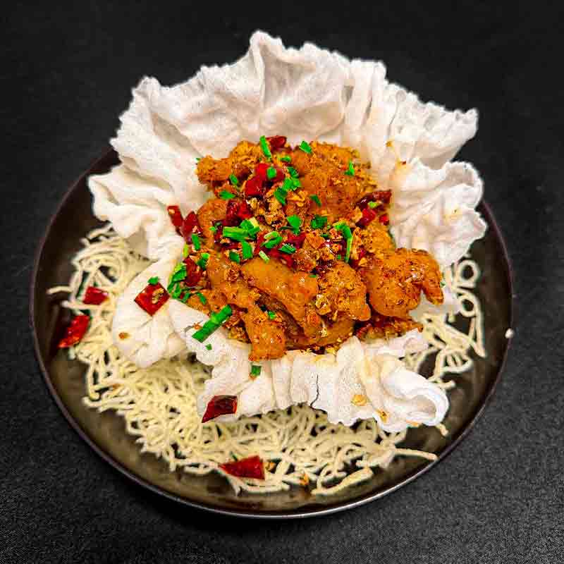 Deep fried Chicken Cube with Szechuan Red Chili.