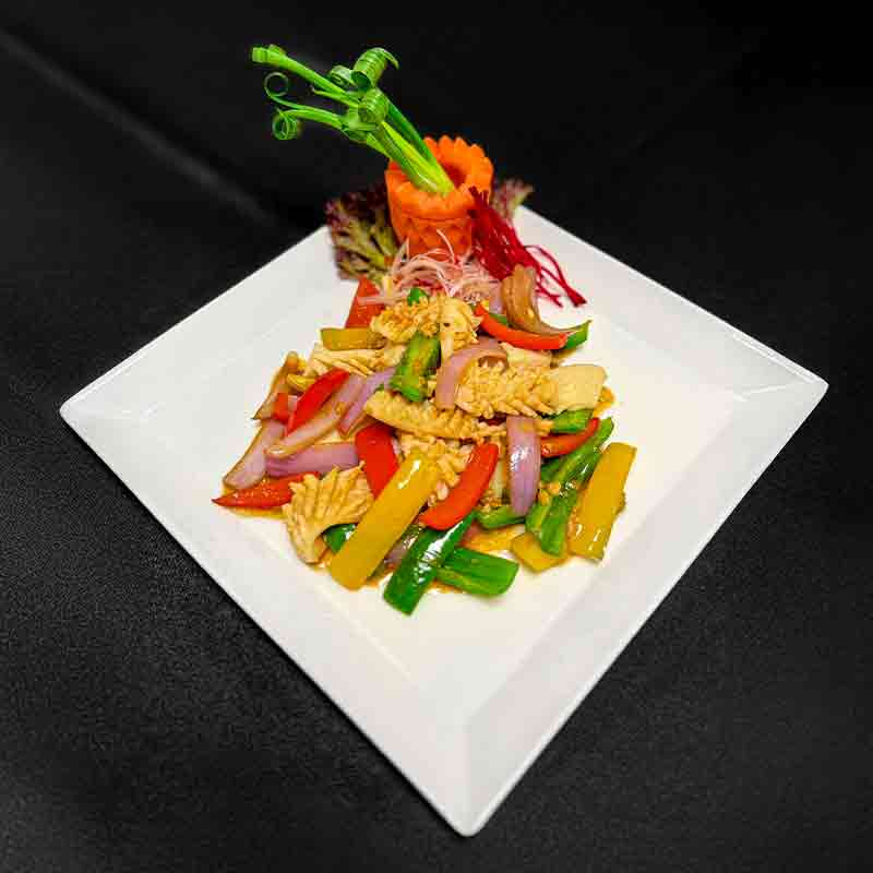 Wok fried cuttlefish with three kinds of capsicum