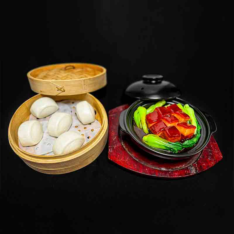Braise Tong Pork Belly with Pok Choy. Served with plain bun.