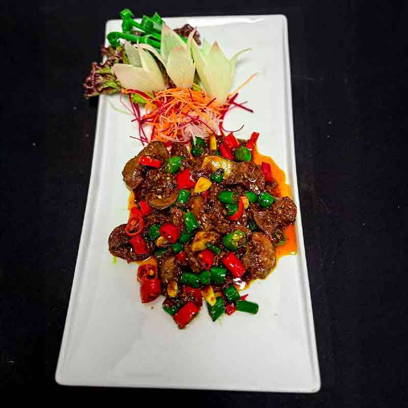 Wok fried pork kidney with Long Chili and Szechuan paste